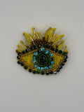 Hand-Beaded Sunshine Yellow Evil Eye Brooch