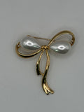 Tie your look together with the timeless elegance of our Pearl & Gold Ribbon Bow Brooch.