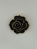 This stunning pin features layers of glossy black enamel petals, arranged in a swirling bloom. Each petal is outlined with a delicate, textured gold-tone rim, adding definition and a hint of luxury to the dark silhouette. Whether you are aiming for a gothic-chic look or simply want a sophisticated floral accessory that matches everything, this rose is the perfect choice.