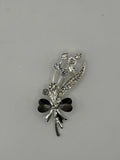 The standout detail is the base of the bouquet, where the stems are "tied" together with a bow formed by two faceted black heart-shaped crystals. This touch of dark romance makes it a perfect accessory for both classic and edgy styles.