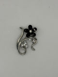 Silver-Tone Swirl Brooch with Black Crystal Flower